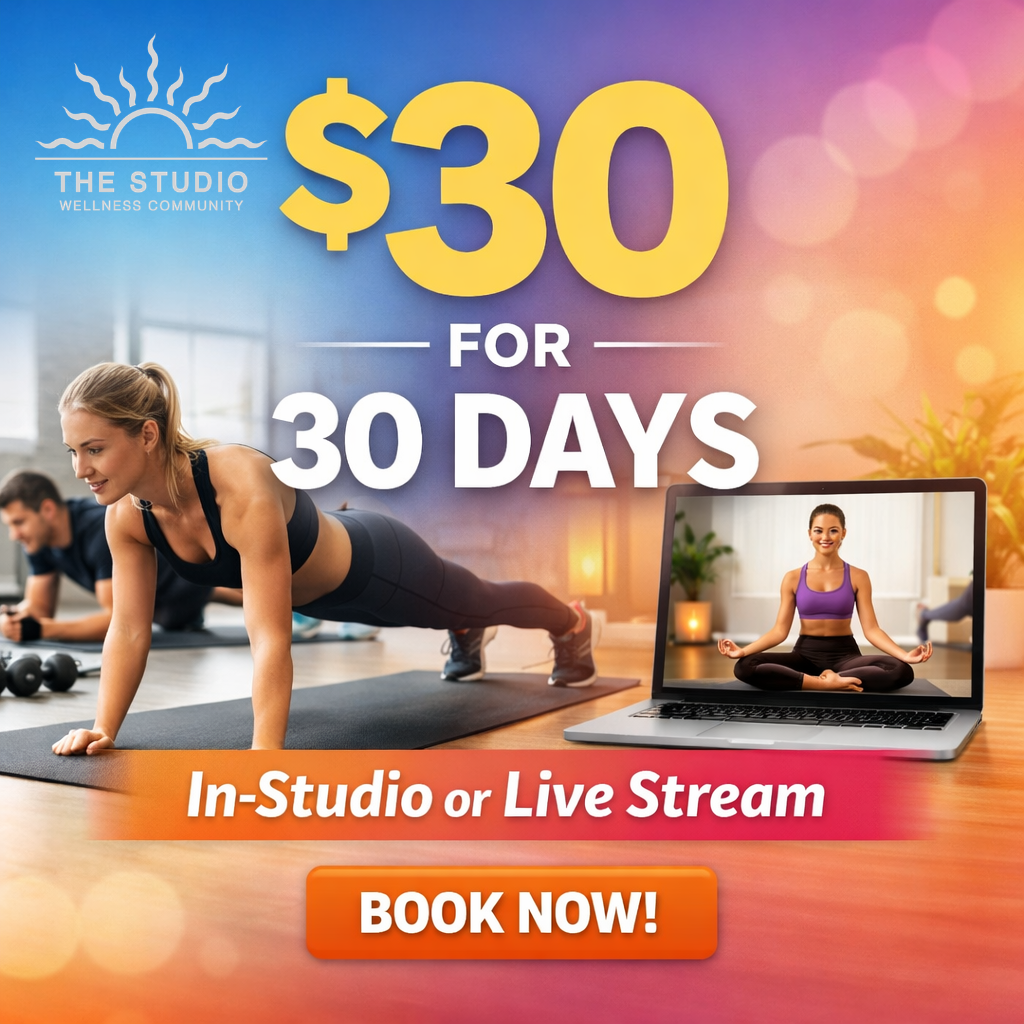 The Studio Wellness Community is a full-spectrum wellness center designed to support healthy living through movement, strength, fitness, cardio, nutrition, and holistic self care practices like mindfulness and meditation—all rooted in connection, support, and fun. Offerings available in group or private sessions.